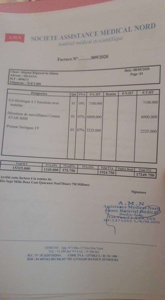 وقد تم اليوم الجمعة تسليم الهبة الى المستشفى الجهوي من طرف عاطف الهمامي المشرف على على عملية التبرع مؤكدا حرص ابناء سليانة بالمهجر على مساعدة الجهة متى احتاجت لهم. من حهة أخرى أفاد الهمامي بأن المعدات تبلغ قيمتهم اكثر من 17 الف دينارا و تتمثل في :