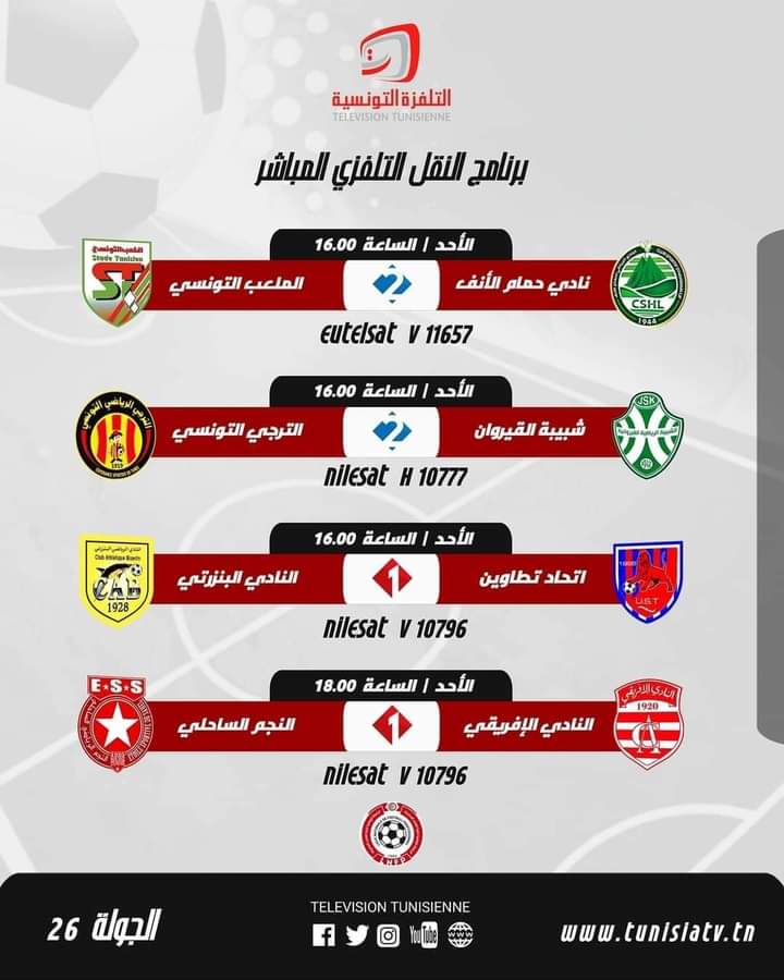 • الرابطة الأولى: برنامج مباريات اليوم و النقل التلفزي