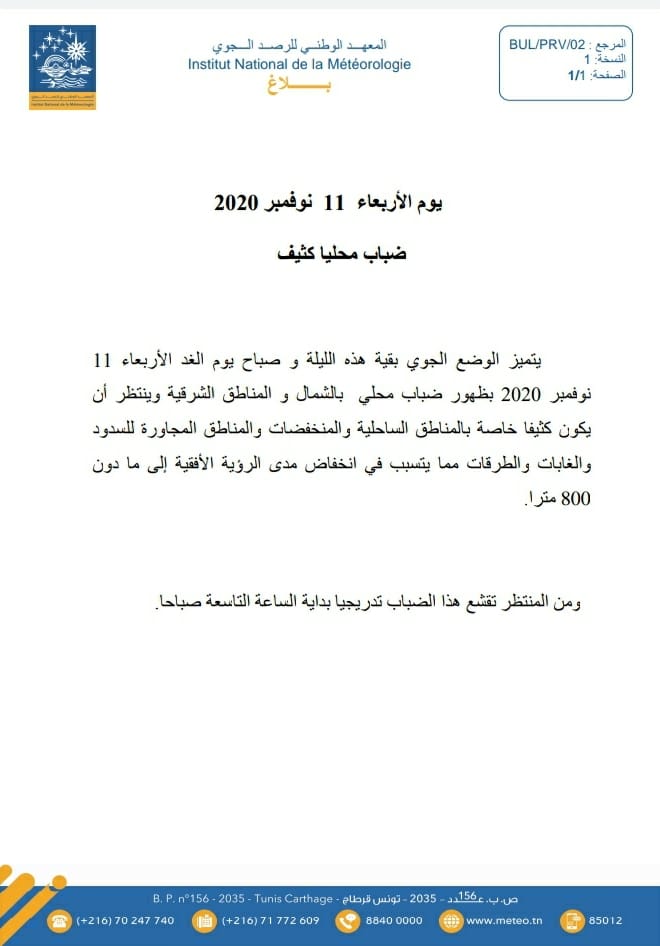 الليلة وغدا : ضباب بهذه المناطق … ومعهد الرصد الجوي يحذر من قبل saber 10 نوفمبر، 2020 10 نوفمبر، 2020 اصدر المعهد الوطني للرصد الجوي نشرة محينة . وحذر المعهد من الضباب المحلي بالشمال يحجب الرؤية . شارك 0 FacebookTwitterEmail المقال السابق سليانة: إسترجاع عقار دولي فلاحي يمسح 37 هكتارا بكسرى المقال الموالي وزير الصحة: من المنتظر مواصلة العمل بالإجراءات التي اقرتها الحكومة إلى ما بعد 15 نوفمبر مقالات ذات صلة بداية من منتصف الليلة: شهب « البرشاويات »... 11 أغسطس، 2024 الاثنين المقبل.. تونس على موعد مع خسوف ظليلي 23 مارس، 2024 اليوم دخول “العزارة”.. ماذا تعني ؟ 3 فبراير، 2024 غدا : أول أيام فصل الشتاء 28 نوفمبر، 2023 اليوم..بداية الاعتدال الخريفي 23 سبتمبر، 2023 غدا: تونس على موعد مع خسوف للقمر 4 مايو، 2023