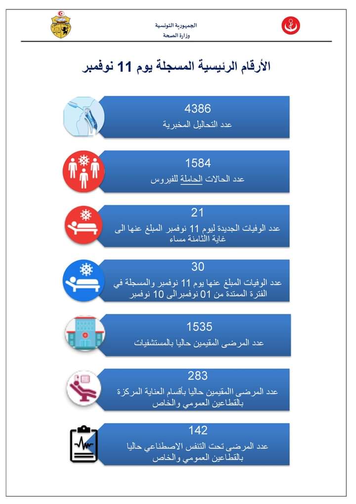 تسجيل 1584 إصابة جديدة و 21 حالة وفاة بكورونا في تونس من قبل saber 12 نوفمبر، 2020 12 نوفمبر، 2020 تسجيل 1584 إصابة جديدة بفيروس كورونا. شارك 0 FacebookTwitterEmail المقال السابق المنتخب التونسي ينهي استعداداته لمباراة تنزانيا المقال الموالي طقس اليوم: أجواء مغيمة جزئيا بأغلب الجهات مقالات ذات صلة 23 يوليو، 2025 ايقاف مدير مدرسة ومسؤول اثر تسمم جماعي لتلاميذ 21 يناير، 2024 سليانة: إنجاز حوالي 24 ألف عملية تحيين لسجل... 24 نوفمبر، 2023 سليانة بين ندرة الأمطار و كثرة الأعطاب.. 30 مارس، 2023 سليانة : تخصيص 2000 مساعدة اجتماعية عينيّة لفائدة... 25 مارس، 2023 سيدي بوزيد : بائع خمر خلسة يحاول إرشاء... 18 فبراير، 2023