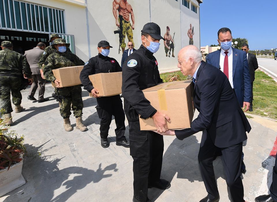 توجه  رئيس الجمهورية قيس سعيد اليوم الأحد إلى ثكنة الأمن الرئاسي بقمرت، حيث أشرف على تجميع عدد من التبرعات العينية.