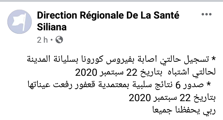 سليانة:تسجيل إصابتين بفيروس كورونا بسليانة المدينة من قبل saber 24 سبتمبر، 2020 24 سبتمبر، 2020 أعلنت الإدارة الجهوية للصحة بسليانة اليوم الخميس عن تسجيل حالتي إصابة بفيروس كورونا بسليانة المدينة. شارك 0 FacebookTwitterEmail المقال السابق تونس: 826 إصابة جديدة بكورونا و 6 وفيات في يوم واحد المقال الموالي جندوبة: وفاة ثانية بكورونا في يوم واحد مقالات ذات صلة الشركة الجهوية للنقل بسليانة تتسلم تتسلم حافلات جديدة(صور) 9 أكتوبر، 2025 سليانة: تنظيم يوما تحسيسيا لتقصي سرطان الثدي والاستعمال... 7 أكتوبر، 2025 سليانة: الإعداد لقبول 1000 طفل في إطار برنامج... 6 أكتوبر، 2025 سليانة الأولى وطنيا في إنتاج الصنوبر الحلبي 3 سبتمبر، 2025 سليانة: فسخ عقد المقاول المتعهد بأشغال المسبح البلدي 30 أغسطس، 2025 الاثنين القادم: استئناف العمل بالتوقيت الشتوي 29 أغسطس، 2025