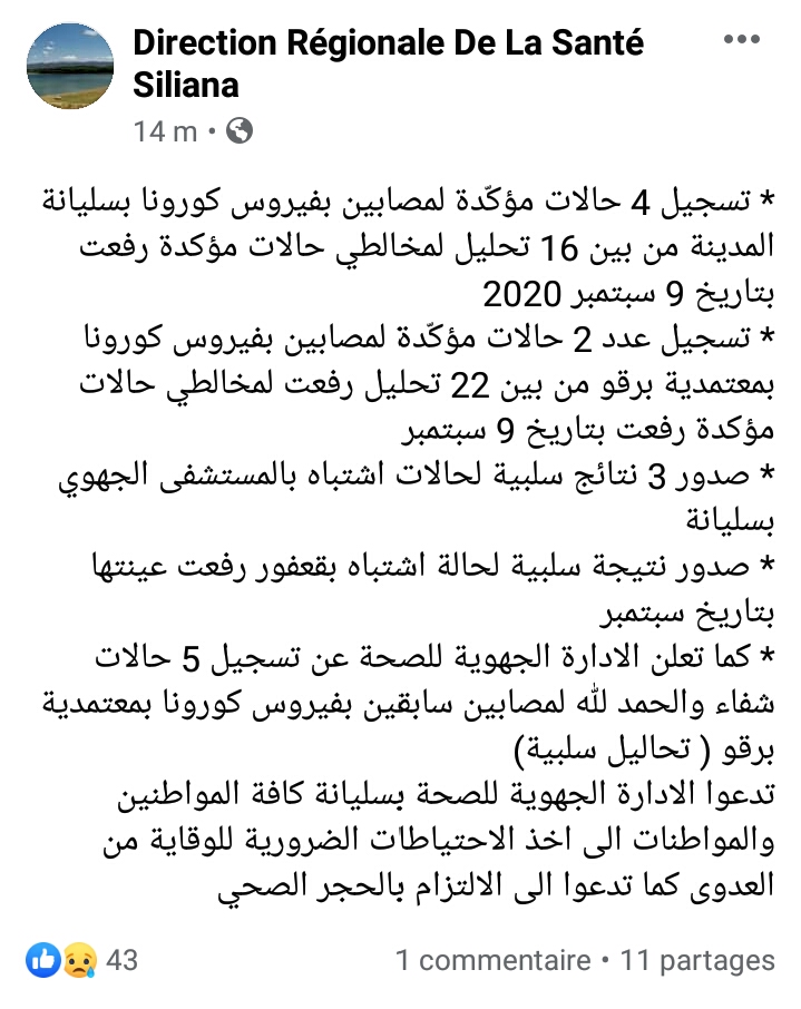 سليانة: تسجيل 6 إصابات جديدة بفيروس كورونا