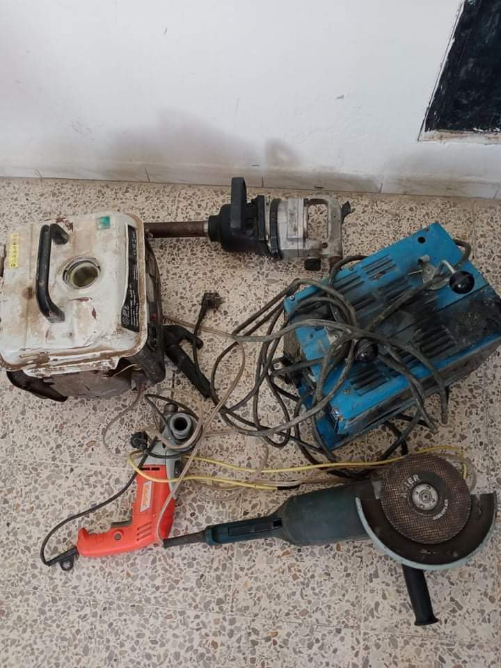 و قد تم الاحتفاظ بجميع عناصرها مع حجز آلات كهربائية و آلات ميكانيكية و قطع غيار و هياكل دراجات نارية و معدات بناء و اسلاك كهربائية ذات ضغط عالي كلّها محل سرقة و ذات قيمة مالية هامة.