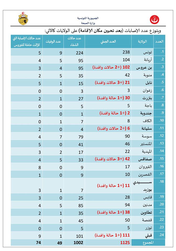 تم اليوم تسجيل 2 حالات مؤكدة وافدة لرجلين اصيلي ولاية سليانة وتم اجلاؤهم من الكويت.