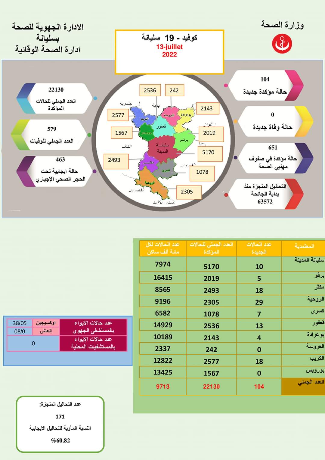 سليانة: تسجيل 104 إصابة جديدة بفيروس كورونا من قبل saber 14 يوليو، 2022 14 يوليو، 2022 أعلنت الادارة الجهوية للصحة بسليانة اليوم الخميس عن تسجيل 104 إصابة جديدة بفيروس كورونا شارك 0 FacebookTwitterEmail المقال السابق العالم يشهد الليلة ظهور القمر العملاق الأكبر لعام 2022 المقال الموالي سليم: تونس دخلت فعليا في الموجة السادسة لكورونا .. وهذا موعد انتهائها مقالات ذات صلة سليانة: افتتاح موسم جني الزيتون 25 أكتوبر، 2025 سليانة: برمجة زراعة 200 ألف هكتار زراعات كبرى 23 أكتوبر، 2025 سليانة: قريبا الإعلان عن طلب العروض المتعلق بمشروع... 21 أكتوبر، 2025 سليانة: تأثير ايجابي للأمطار الأخيرة التي شهدتها الجهة... 20 أكتوبر، 2025 الشركة الجهوية للنقل بسليانة تتسلم تتسلم حافلات جديدة(صور) 9 أكتوبر، 2025 سليانة: تنظيم يوما تحسيسيا لتقصي سرطان الثدي والاستعمال... 7 أكتوبر، 2025