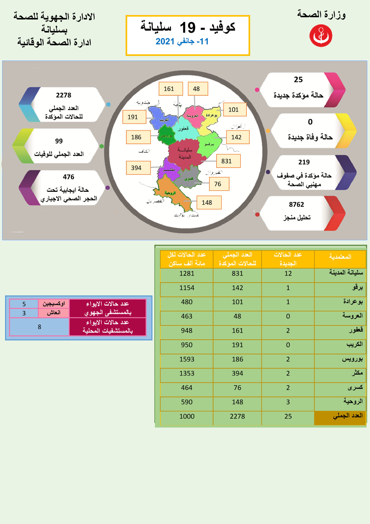 سليانة: تسجيل 25 إصابة جديدة بفيروس كورونا من قبل saber 12 يناير، 2021 12 يناير، 2021 أعلنت الادارة الجهوية للصحة بسليانة اليوم عن تسجيل 25 إصابة جديدة بفيروس كورونا بتاريخ 11 جانفي 2021 . شارك 0 FacebookTwitterEmail المقال السابق بن علية: تعليق الدروس ومنع التنقل بين المدن وتعليق انتصاب الأسواق سيتواصل إلى غاية 24 جانفي المقال الموالي الاربعاء :رياح قوية وأمطار متفرقة مقالات ذات صلة الشركة الجهوية للنقل بسليانة تتسلم تتسلم حافلات جديدة(صور) 9 أكتوبر، 2025 سليانة: تنظيم يوما تحسيسيا لتقصي سرطان الثدي والاستعمال... 7 أكتوبر، 2025 سليانة: الإعداد لقبول 1000 طفل في إطار برنامج... 6 أكتوبر، 2025 سليانة الأولى وطنيا في إنتاج الصنوبر الحلبي 3 سبتمبر، 2025 سليانة: فسخ عقد المقاول المتعهد بأشغال المسبح البلدي 30 أغسطس، 2025 الاثنين القادم: استئناف العمل بالتوقيت الشتوي 29 أغسطس، 2025