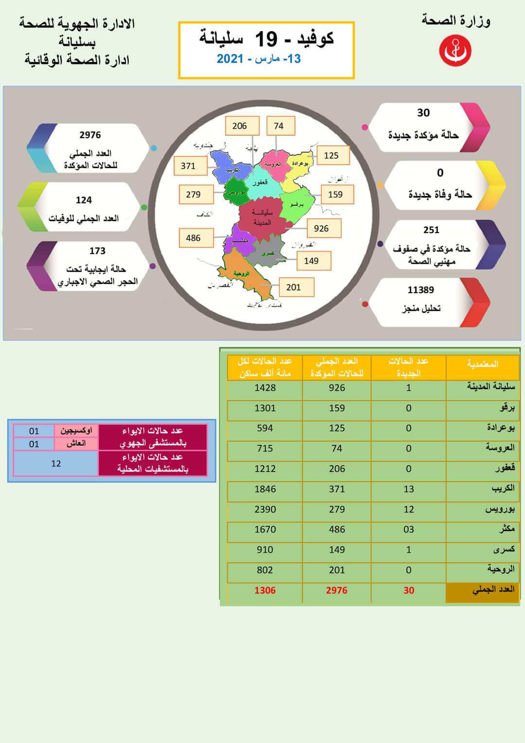 سليانة: تسجيل 30 إصابة جديدة بفيروس كورونا من قبل saber 14 مارس، 2021 14 مارس، 2021 أعلنت الادارة الجهوية للصحة بسليانة اليوم عن تسجيل 30 إصابة جديدة بفيروس كورونا بتاريخ 13 مارس 2021. شارك 1 FacebookTwitterEmail المقال السابق قيس سعيد :” ولاية قابس مدينة شهيدة في بلد جريح…” المقال الموالي 60 ألف تونسي مصاب بانفصام الشخصية مقالات ذات صلة سليانة: افتتاح موسم جني الزيتون 25 أكتوبر، 2025 سليانة: برمجة زراعة 200 ألف هكتار زراعات كبرى 23 أكتوبر، 2025 سليانة: قريبا الإعلان عن طلب العروض المتعلق بمشروع... 21 أكتوبر، 2025 سليانة: تأثير ايجابي للأمطار الأخيرة التي شهدتها الجهة... 20 أكتوبر، 2025 الشركة الجهوية للنقل بسليانة تتسلم تتسلم حافلات جديدة(صور) 9 أكتوبر، 2025 سليانة: تنظيم يوما تحسيسيا لتقصي سرطان الثدي والاستعمال... 7 أكتوبر، 2025