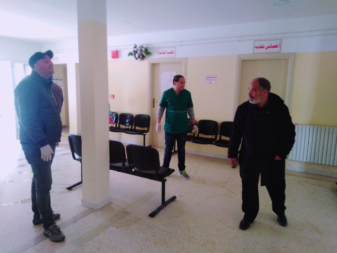 نظمت ادارة المستشفى المحلي بكسرى صباح اليوم الاثنين 16 مارس 2020 حملة نظافة وتعقيم شملت مختلف اقسام المستشفى وذلك في إطار الحملات التي تنظم على الصعيد الوطني للتحسيس بخطورة تفشي فيروس “كورونا”وسبل التوقي من مخاطر العدوى بهذا الفيروس وشارك في هذه الحملة جميع العاملين بالمستشفى من اطارات و اعوان بجميع اختصاصاتهم .