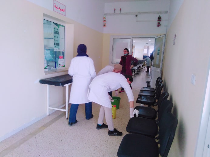 وأوضح المشاركون أن الهدف من الحملة يتمثل أولا في مواصلة عمليات التنظيف التي يخضع لها المستشفى يوميا ، من أجل توفير فضاء ملائم لاستقبال المرضى، إضافة إلى تنظيم حملات تحسيسية لفائدة قاصدي المستشفى حول الإجراءات الاحترازية الضرورية للوقاية من وباء “كورونا”.
