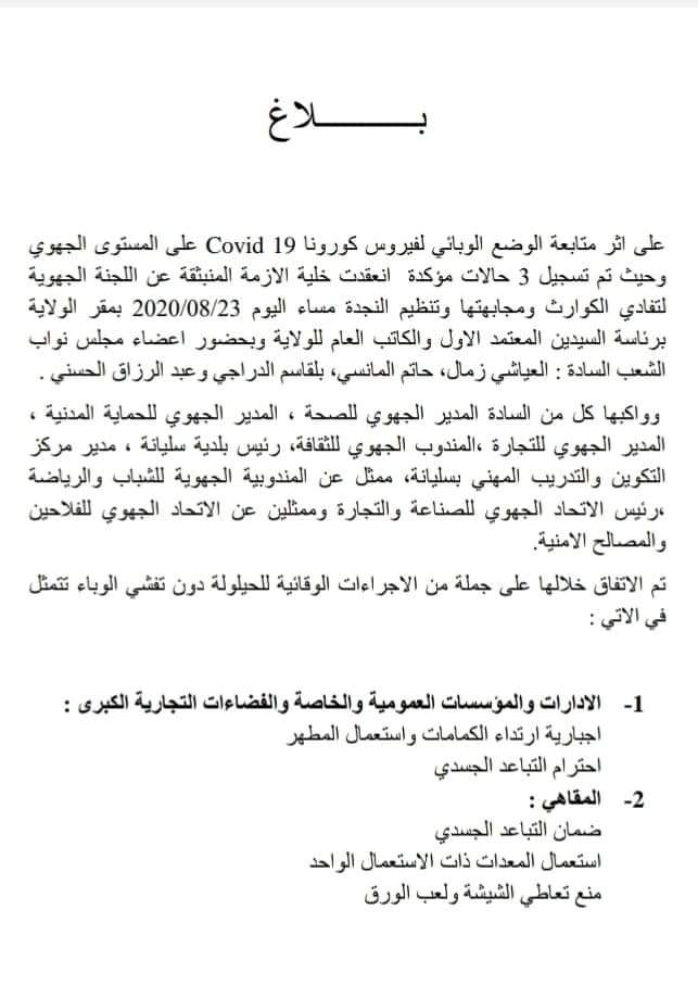سليانة: غلق الحمامات وإلغاء كل المهرجانات من قبل saber 23 أغسطس، 2020 23 أغسطس، 2020 شارك 0 FacebookTwitterEmail المقال السابق سليانة: اللجنة الجهوية لمجابهة الكوارث تتخذ جملة من الاجراءات بعد تسجيل 3 اصابات محلية المقال الموالي بيارن ميونيخ بطيح ب”البي اس جي”ويتوتج بطلا لدوري أبطال اوروبا مقالات ذات صلة 23 يوليو، 2025 ايقاف مدير مدرسة ومسؤول اثر تسمم جماعي لتلاميذ 21 يناير، 2024 سليانة: إنجاز حوالي 24 ألف عملية تحيين لسجل... 24 نوفمبر، 2023 سليانة بين ندرة الأمطار و كثرة الأعطاب.. 30 مارس، 2023 سليانة : تخصيص 2000 مساعدة اجتماعية عينيّة لفائدة... 25 مارس، 2023 سيدي بوزيد : بائع خمر خلسة يحاول إرشاء... 18 فبراير، 2023