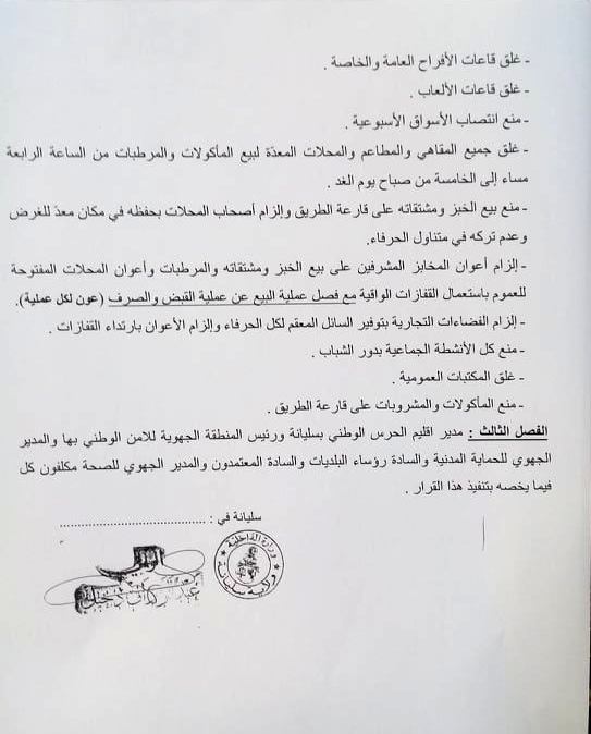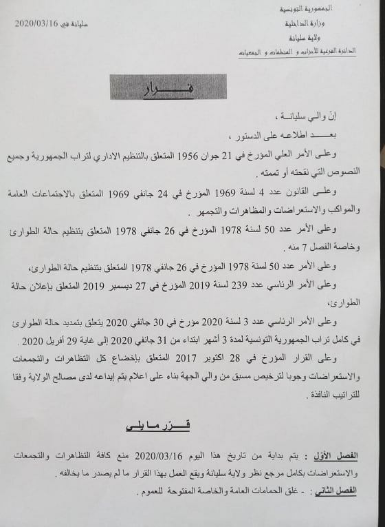سليانة: غلق قاعات الأفراح و منع الأسواق (وثيقة)