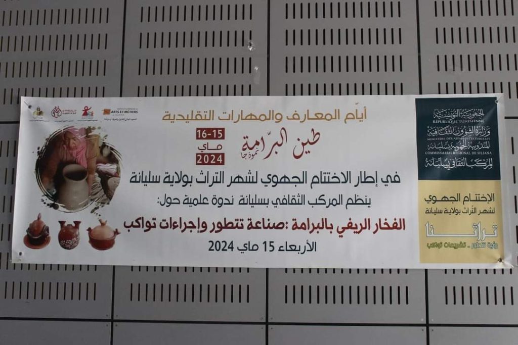أختتم اليوم الأربعاء 15 ماي 2024 بفضاء المركب الثقافي بسليانة شهر التراث الذي ينتظم هذه السنة تحت شعار ” أيام المعارف والمهارات التقليدية : طين البرامة نموذجا ، وذلك بإشراف والي سليانة وليد العبّاسي و عدد من الأساتذة والدكاترة المحاضرين والإطارات الجهوية .