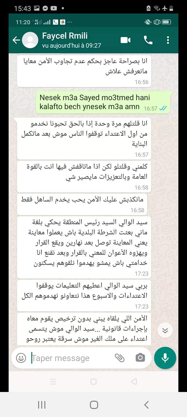 وقال الوالي المقال : ” شكرا للسيد فيصل الرميلي على التنصل من المسؤولية بعد الحاحه و طلبه تسخير الآليات و تنفيذ القرارات البلدية”.