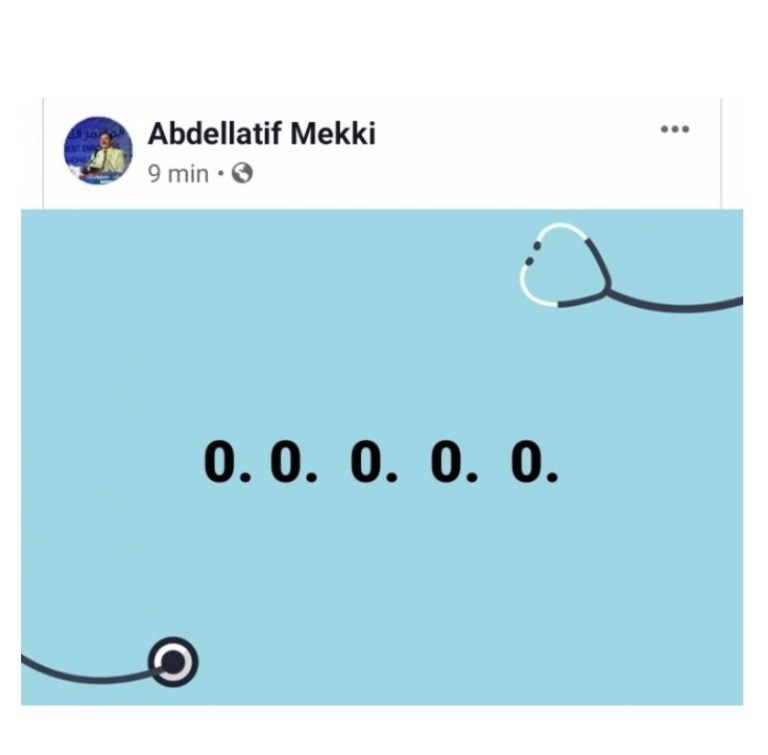 نشر وزير الصحة عبد اللطيف المكي التدوينة التالية على حسابه الشخصي بالفايسبوك للتبشير بتسجيل توني للصفر إصابة بفيروس كورونا لليوم الخامس على التوالي:
