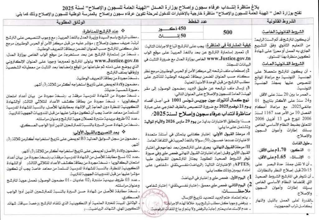 • مناظرة انتداب عرفاء سجون وإصلاح لسنة 2025