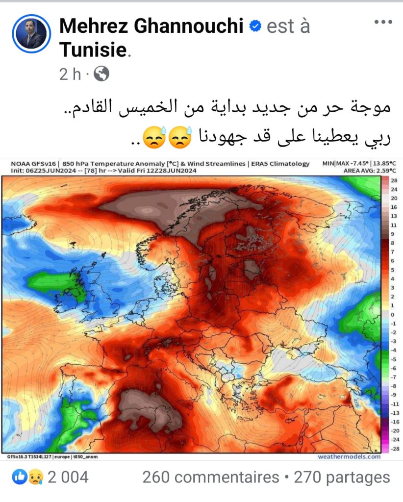 موجة حرّ جديدة بداية من الخميس المقبل من قبل saber 25 يونيو، 2024 25 يونيو، 2024 أفاد المهندس الأول بالمعهد الوطني للرصد الجوي، محرز الغنوشي، بأنه من المتوقع تسجيل موجة حر من جديد بداية من الخميس القادم. شارك 0 FacebookTwitterEmail المقال السابق بكالوريا 2024.. ولاية سليانة تحتل المرتبة 18 وطنيا المقال الموالي هل ستعتمد الصوناد نظام التقسيط أو الحصص؟ مقالات ذات صلة وزارة الصحة: انطلاق الأسبوع العالمي للرضاعة الطبيعية من... 2 نوفمبر، 2025 وزارة الصحة: انطلاق الأسبوع العالمي للرضاعة الطبيعية من... 2 نوفمبر، 2025 إتفاقيات جديدة مع ليبيا وقطر لتأطير تشغيل التونسيين... 2 نوفمبر، 2025 16 ديسمبر.. النظر في مقترح قانون انتداب أصحاب... 30 أكتوبر، 2025 بداية من اليوم : الصّيدليّات تُوقف العمل بصيغة... 27 أكتوبر، 2025 وزارة الصحة : تقنية جديدة لتسريع تشخيص الأمراض... 25 أكتوبر، 2025