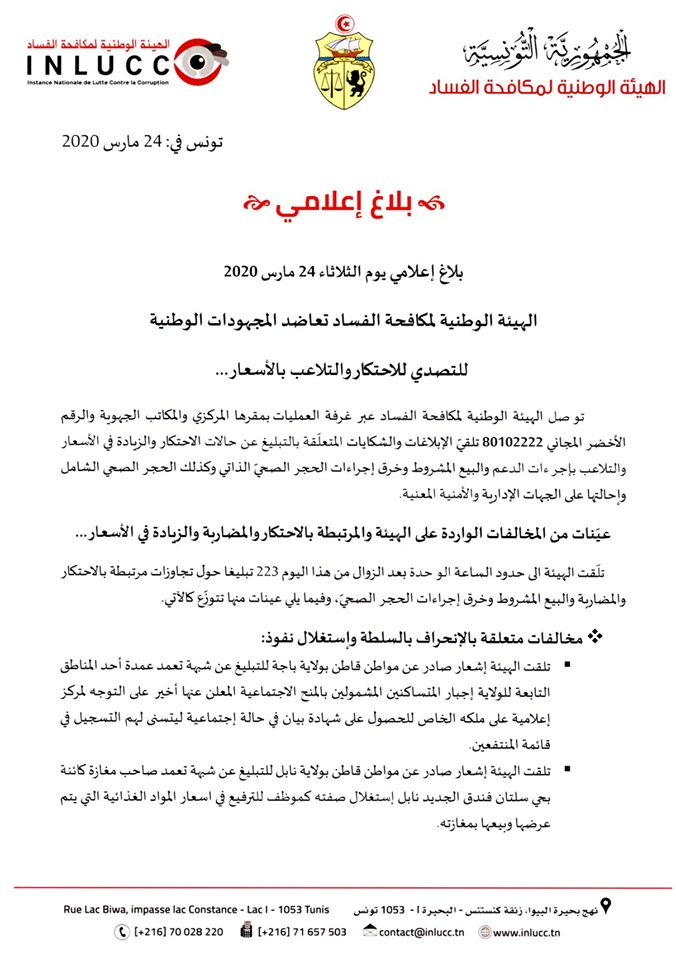 انعقد اليوم اجتماع اللجنة المشتركة بين وزارة التجارة والهيئة الوطنية لمكافحة الفساد تحت اشراف كل من محمد المسيليني وزير التجارة والعميد شوقي الطبيب رئيس الهيئة.