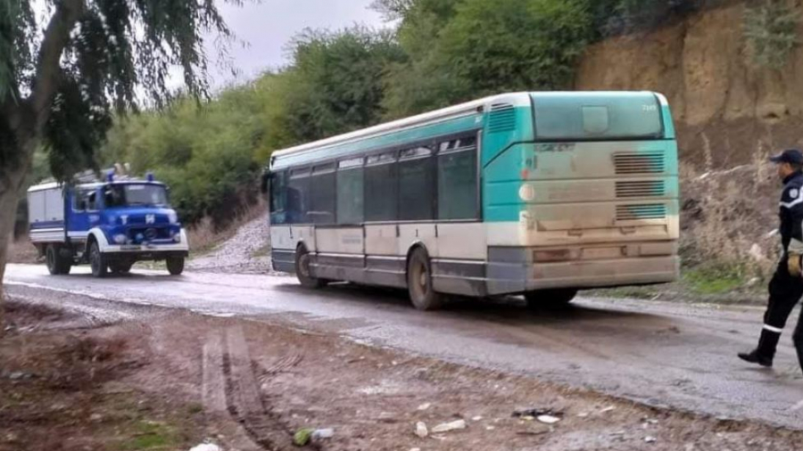 وادي مليز: انزلاق حافلة لنقل التلاميذ بسبب فيضان وادي الرغاي(صور)